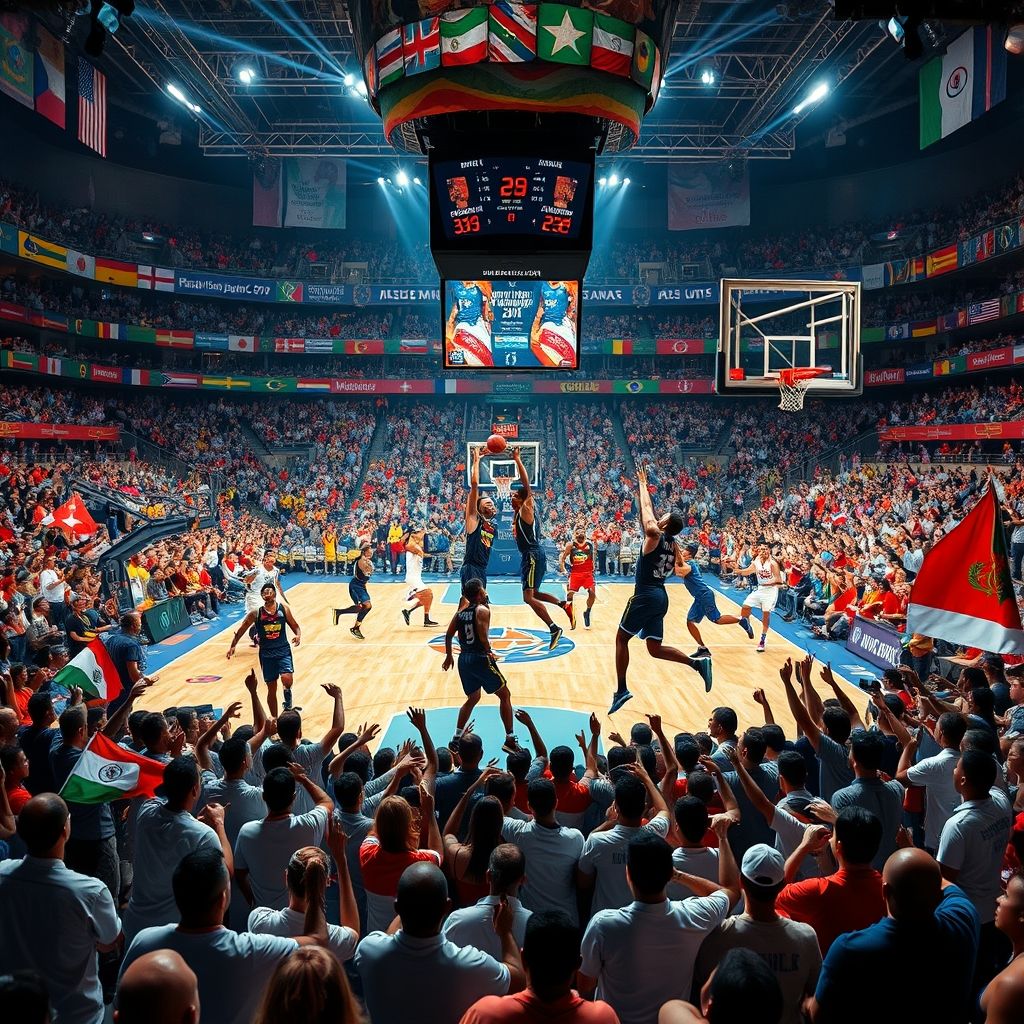 这项赛事由国际篮球联合会(FIBA)主办,汇聚了来自五大洲的篮球强国。美国的NBA明星、欧洲的战术大师、非洲的力量巨兽、亚洲的技术奇才……来自不同文化背景、不同战术体系的球队,在这个舞台上聚集,展示着各自的独特风采。每一场比赛都像是一场战术与意志的对决,每一秒都充满了无限的悬念与精彩。